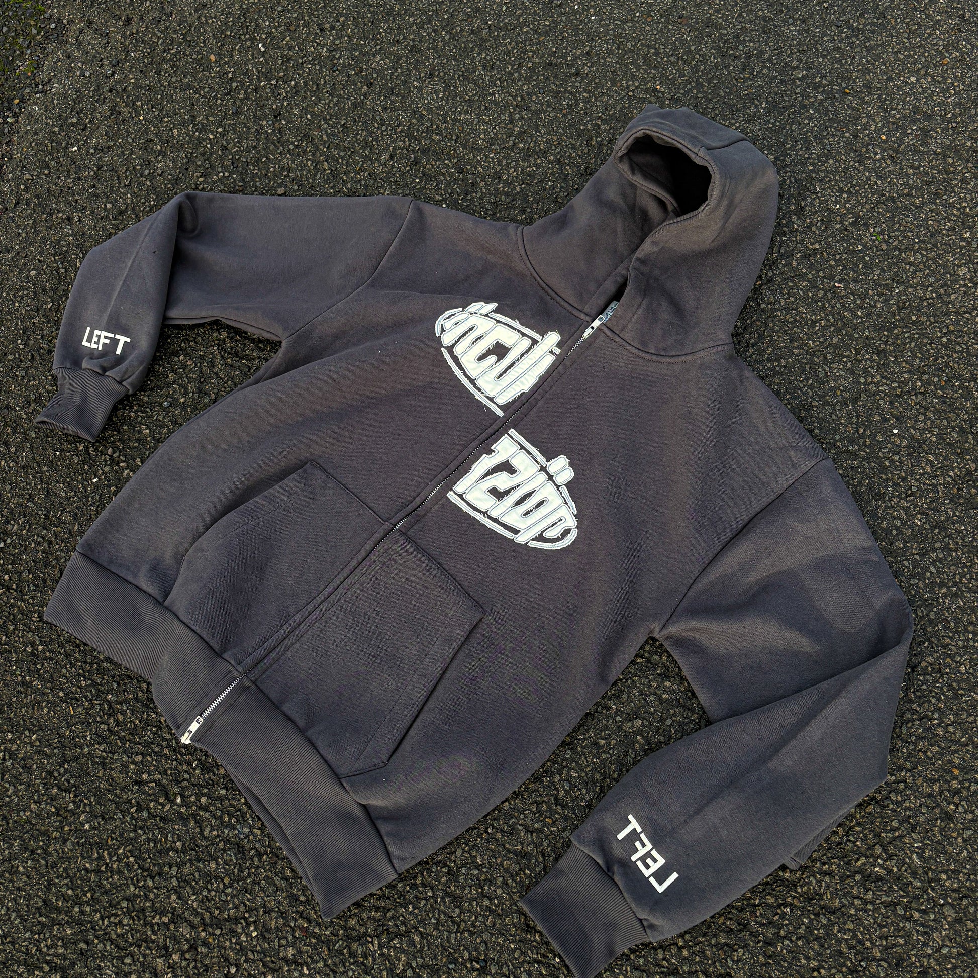 Incurzion | Relaxed Double Zip Hoodie | Charcoal | Embroidered